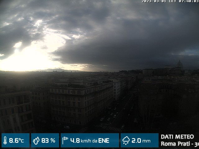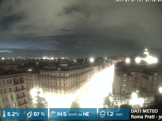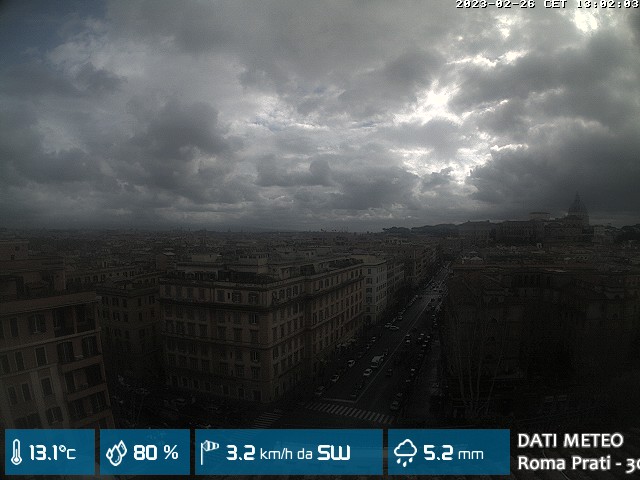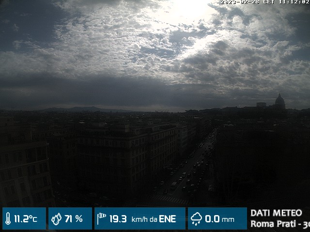 Webcam ad alta risoluzione di MeteoGiuliacci, installata presso lo Studio Legale Mannucci, in zona Roma Prati 30 m. s.l.m., a due passi dalla Città del Vaticano e dai principali monumenti della Capitale d'Italia.