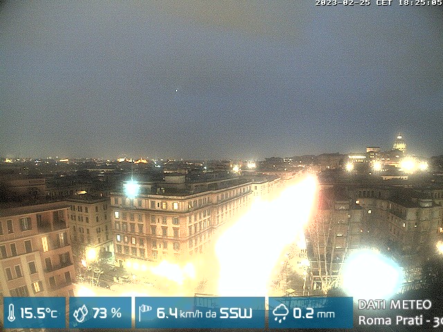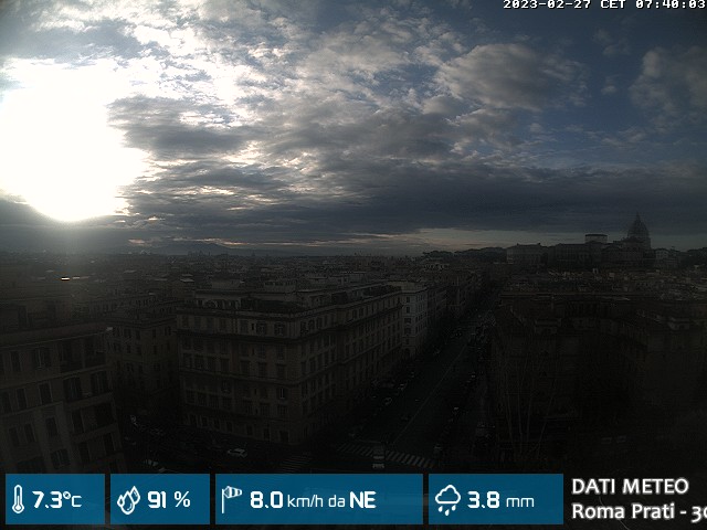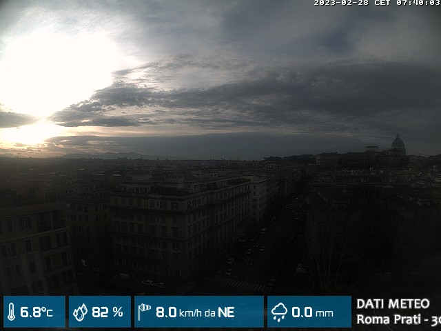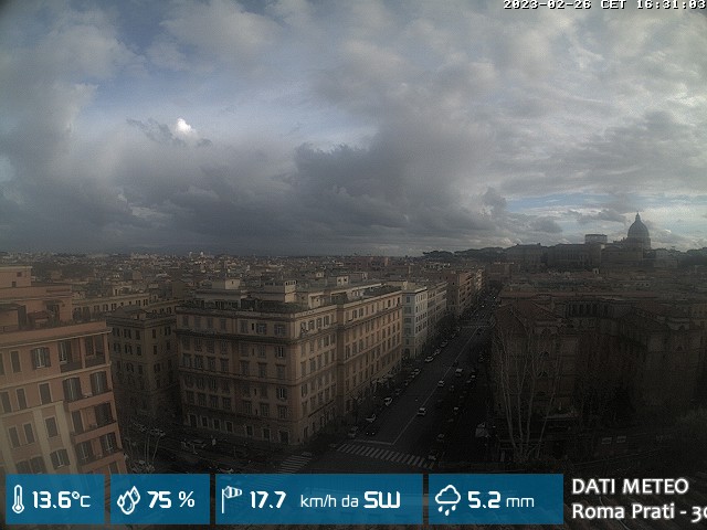Webcam ad alta risoluzione di MeteoGiuliacci, installata presso lo Studio Legale Mannucci, in zona Roma Prati 30 m. s.l.m., a due passi dalla Città del Vaticano e dai principali monumenti della Capitale d'Italia.